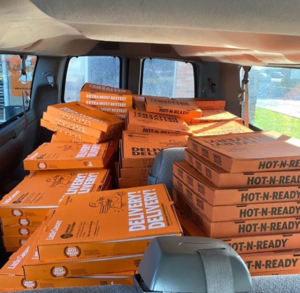Hundreds of pizzas provided by the support group.