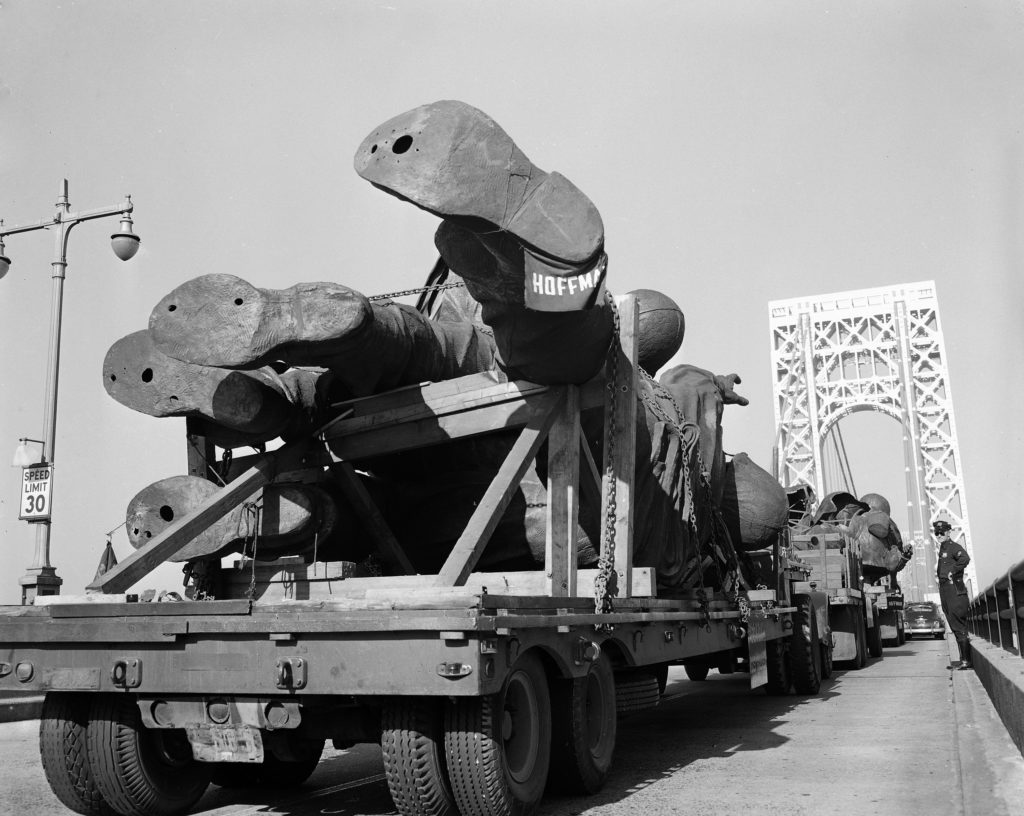 Featured image: Sculptor, Felix Weihs de Weldon, works on hands that will hold the flag of the U.S. Marine Corps memorial statue he is making in Washington, D.C., Dec. 24, 1949. The memorial depicts the raising of the flag on Mount Suribachi on the island of Iwo Jima during World War II. | AP Photo/Bill Chaplis