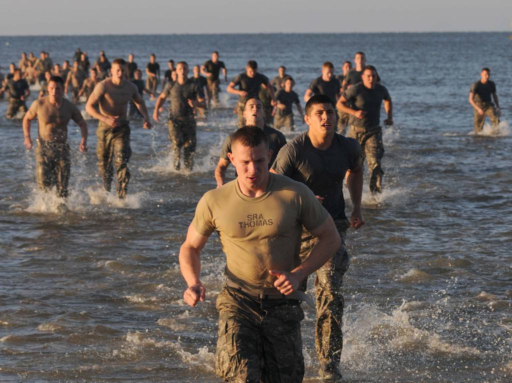 Combat control trainees cool off in the Gulf of Mexico during their physical training session. Candidates prepare for the demands of the remainder of their training while earning an air traffic control certification in 15 weeks. Image Credit: Kemberly Groue/Air Force