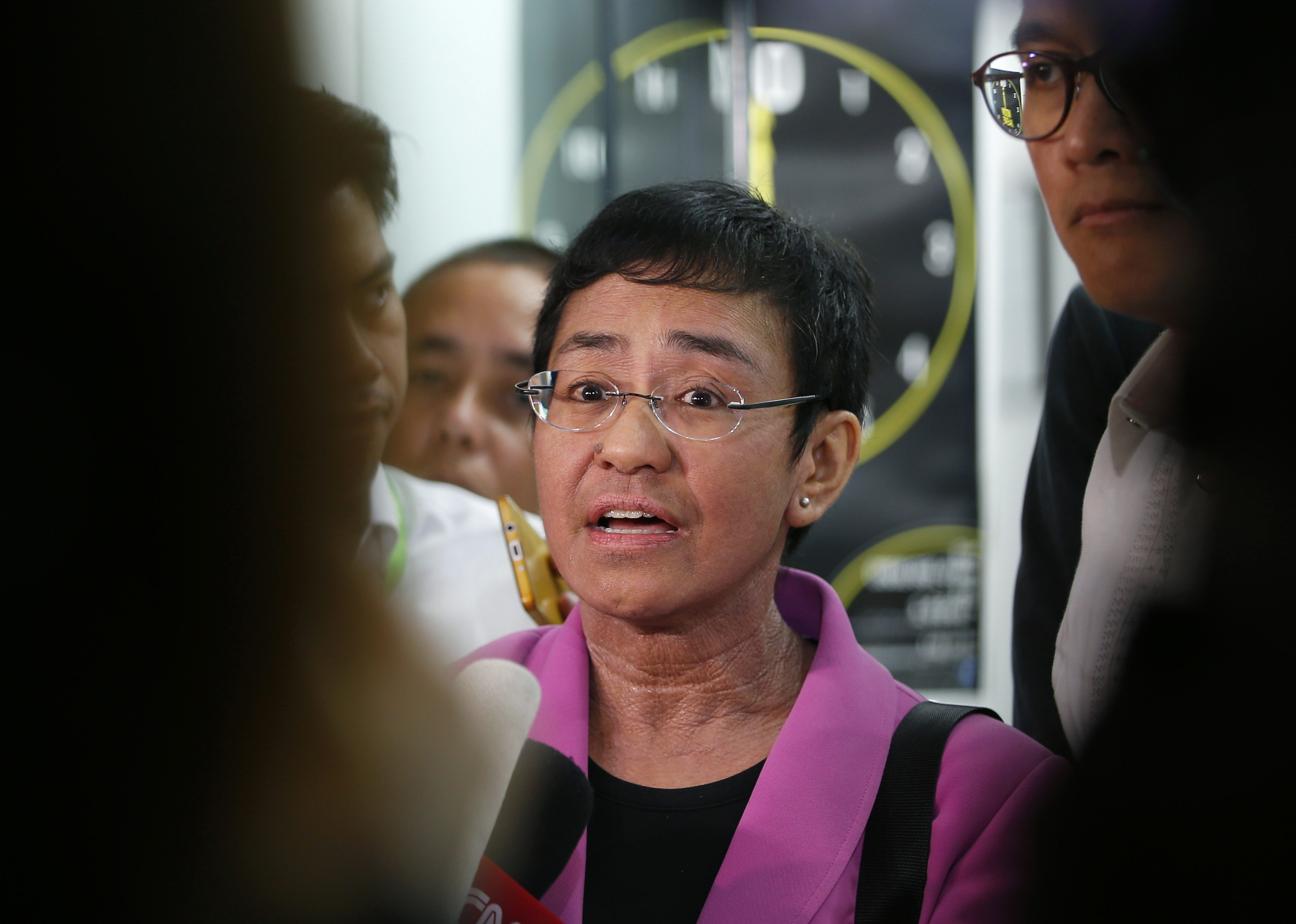 Maria Ressa, CEO of the online news agency Rappler, talks to the media after attending the summons by the National Bureau of Investigation on the cyber libel complaint filed against Rappler five years ago Monday, Jan. 22, 2018 in Manila, Philippines. Last week, the Philippine securities commission revoked the registration of Rappler, known for its critical reporting on Philippine President Rodrigo Duterte, a move media watchdogs said is an act to muzzle the free press. (AP Photo/Bullit Marquez)