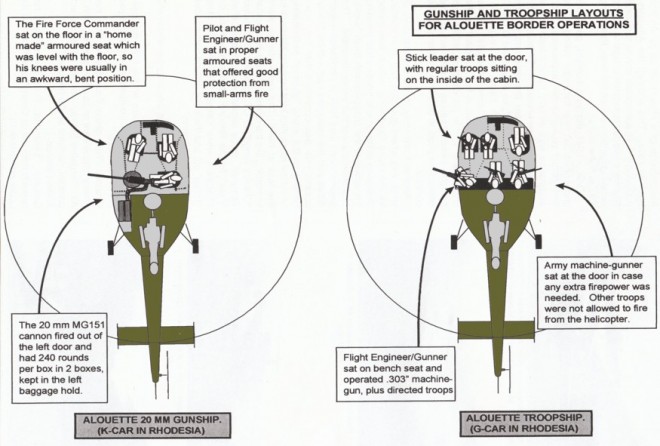 The MK-III Alouette helicopter became synonymous with the RLI’s Fire Force operations over the course of the Bush War. The Alouette came into the Rhodesians inventory prior to 1965 in a limited supply. More were covertly purchased and by the 1970’s the South African Air Force bolstered No. 7 Squadron with up to 27 extra helicopters.