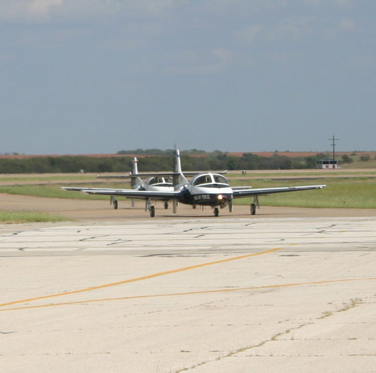 So, we were lined up on the runway and cleared for takeoff! Being instructors, Jim — and I assume Dave — were motor mouthing to their two inexperienced students about how to perform a formation takeoff. In Vance 2, Dave was saying to Bob, “Watch for a throttle up signal from lead. This will be seen as a hand in the air followed by a rapid circular motion. So far, so good?” In the meantime, my instructor Jim was telling me the same thing, with a slight catch: As he was verbally telling me how to do it, he was demonstrating it. Of course, Bob, being the ever so sharp student observed Jim’s demonstration and dutifully pushed the throttle up as directed by the hand signal demonstration. Jim then proceeded to verbalize the next step in the formation takeoff process, which is a forward snap of the head, which directs the release of the brakes. To demonstrate he leaned his head against the seat headrest and snapped his chin down to his chest, telling me, “This is the signal for brake release.” Now you can see what happens next!