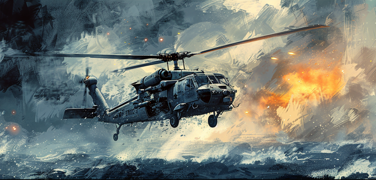 Ellison and the copilot struggle to switch off the Sea Hawk’s engines. If they kill the rotors, they’ll relieve the torque on the airframe.