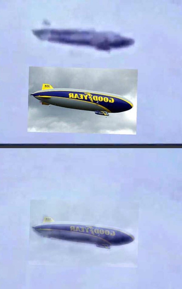 When overlaid with an image of a blimp, this “UFO” starts looking a bit more like an IFO, or Identified Flying Object, though to be fair, it is possible that Swing was himself unsure of what the distant craft may be in the hazy post-rain weather. However, the short duration of the video and excessive shakiness may suggest that he was not only aware but intentionally presented what he was seeing as something out of the ordinary.