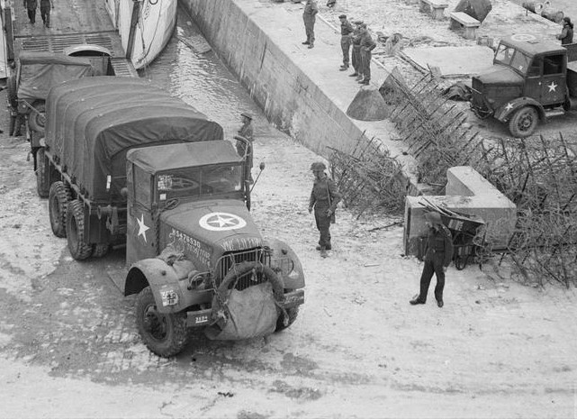 For those who do not know, Mardon Matting was one of those technological marvels of WWII. It was an interlocking system of steel grates that were used to create temporary roads, taxiways and even entire airfields. It allowed the Navy and army to get set up for operations on the ground and in the air very quickly. In this photo below of the Normandy landings, you can see the lines made by the Marsdon matting under the wheels of this heavily laden deuce-and-a-half truck unloading off an LST. Thousands of these metal panels were laid by navy SEA-Bees to create roads off the beach for tanks, trucks, and towed artillery that needed to get off the beach and move inland to expand the beachhead. The sand at Normandy was pretty loosely packed and plenty of pictures from that day show trucks and vehicles mired in the sand until the matting could be laid down.