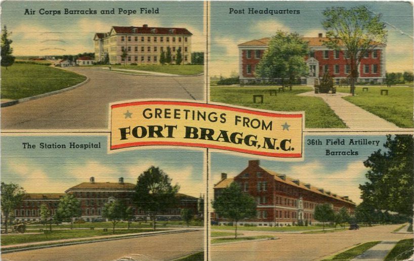 Linen postcard with a collage of scenes of facilities at Fort Bragg, N.C., with the title “Greetings from Fort Bragg, N.C.” The scenes include: Air Corps barracks and Pope Field; the Station Hospital; Fort Bragg Post Headquarters; and the 36th Field Artillery Barracks. Postcard has a message from a man nicknamed “Bud” to Winston F. Hatch of Haverhill, Massachusetts, in October 1941 [circa 1939–1941] [Postcard by: Carolina News Company, Fayetteville, N.C.].Ewoldsen was a native of Greer, South Carolina, and had been in the Army since 2007. According to the Army Times, his duty assignments included stints with “the 4th Brigade Combat Team, 25th Infantry Division at Fort Richardson, Alaska, in 2008; the 3rd Battalion, 75th Ranger Regiment at Fort Benning, Georgia, in 2010; and the 2nd Stryker Brigade Combat Team, 2nd Infantry Division at Joint Base Lewis-McChord, Washington, in 2012.”