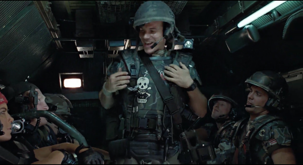 “I’m ready, man, check it out. I am the ultimate badass! State of the badass art! You do not wanna f*ck with me. Check it out! Hey Ripley, don’t worry. Me and my squad of ultimate badasses will protect you!” Private Hudson announced in what was practically a recreation of a conversation I once saw a Lance Corporal have with a journalist. “Check it out! Independently targeting particle beam phalanx. Vwap! Fry half a city with this puppy. We got tactical smart missiles, phased plasma pulse rifles, RPGs, we got sonic electronic ball breakers! We got nukes, we got knives, sharp sticks…”