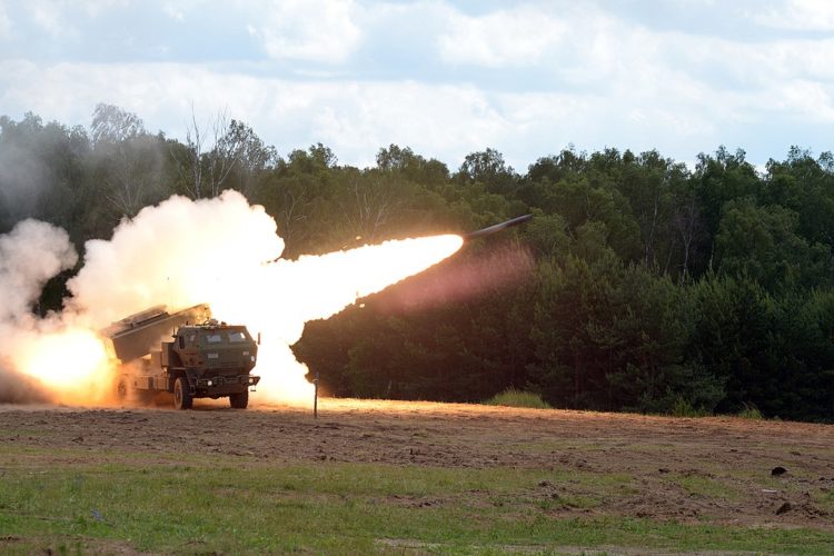 Soldiers assigned to the 5th Battalion, 113th Field Artillery Regiment (High Mobility Artillery Rocket System), North Carolina Army National Guard, fire a M142 HIMARS light multiple rocket launcher during a live fire exercise at Drawsko Pomorski Training Area, Poland, during Exercise Anakonda 16 June 14, 2016 (The National Guard Sgt. 1st Class Robert Jordan/North Carolina National Guard, Public domain, via Wikimedia Commons)