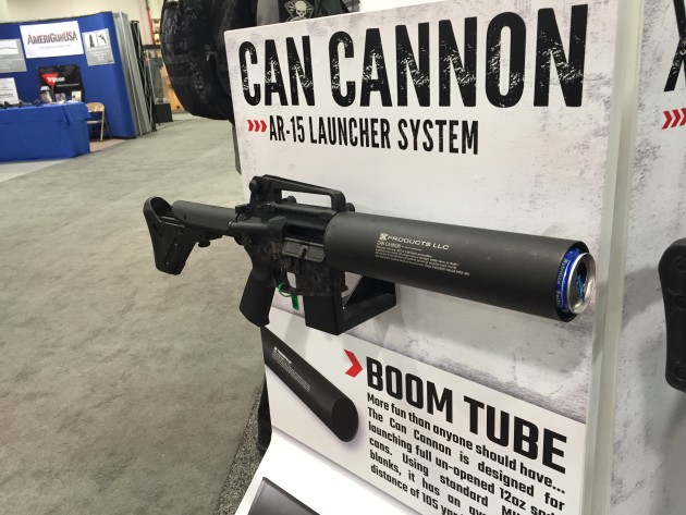 X-products Can Cannon: In the old days, when your drunken friend was screaming at you to get him a beer from 100 meters away, you’d have to get up and WALK that beer over to him. LAME. The can cannon upper attaches to your existing AR lower for a drunken good time.