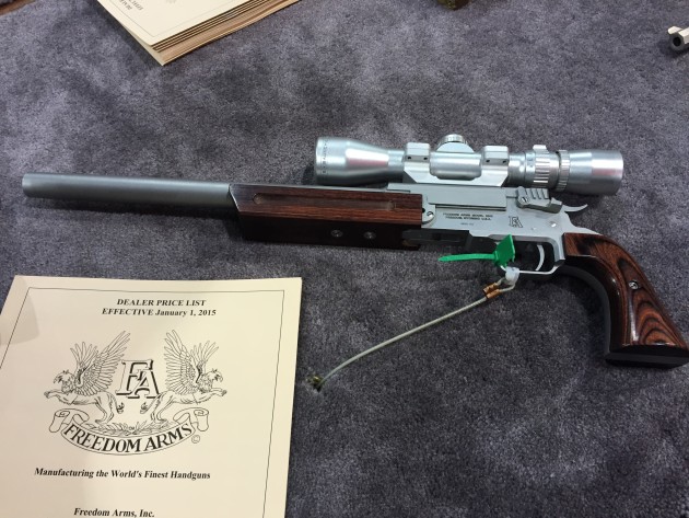 Freedom Arms .45-70 single shot: If you only had one shot to take, and wanted to make an entire head disappear, than this single shot breech loading pistol from Freedom Arms is the one you’re going to want to use. This is a goddamn handheld howitzer. When I asked how bad the kick was, the old timers that create this cannon just laughed. You’ve been warned.