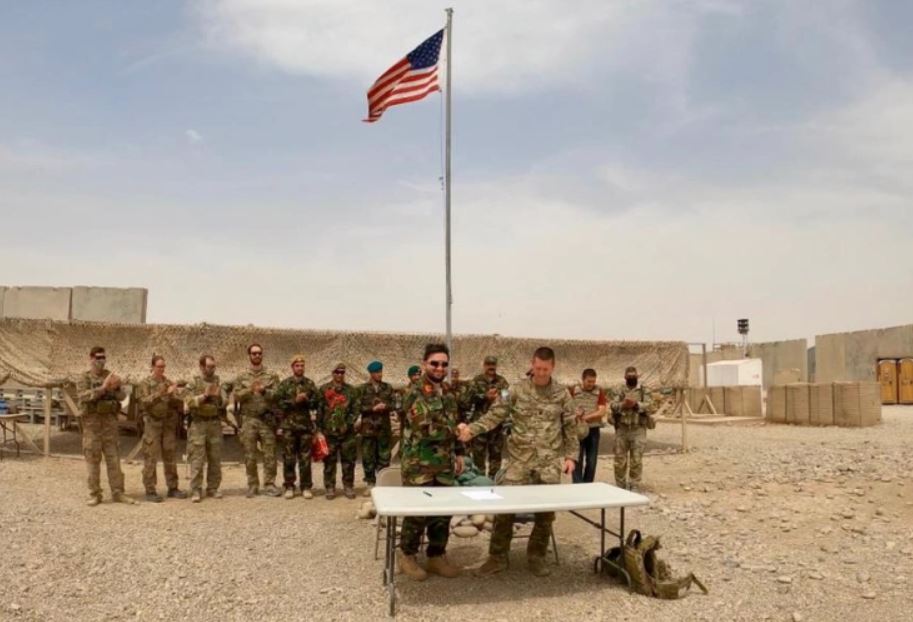 The U.S. turning over a base to the Afghan National Army. (File photo)