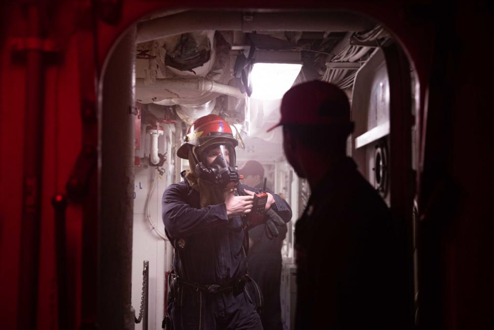 A warship at sea can encounter some fearsome threats, explosions, fires, toxic smoke, flooding, and ultimately drowning the crew if it sinks. A hit by a missile or torpedo can put all of these threats on the table at one time. It is entirely possible for a damage control party to be chest-deep in water fighting a fire giving off toxic smoke in a compartment full of explosive ammunition.
