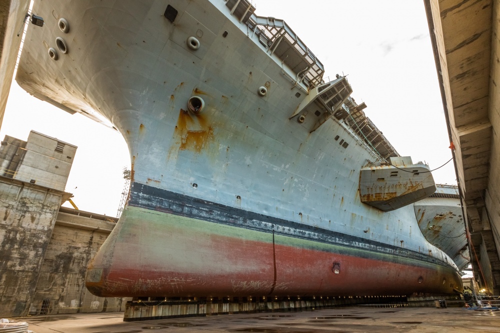 Among America’s fleet of Nimitz class carriers, none has spent more time in service that the class namesake, USS Nimitz. First launched back in 1972, the 1,092 foot long vessel has been parked recently at the Puget Sound Naval Shipyard in Bremerton, Washington, for a bit of incremental maintenance. Placing one of these huge ships in dry dock is no small undertaking — in fact, Russia previously possessed only one floating dry dock large enough to support their much smaller (and chronically troubled) aircraft carrier, the Admiral Kuznetsov. The dock was lost in a fire that caused considerable damage to the ship itself last month, leaving Russia without an operational carrier or the means to repair it.