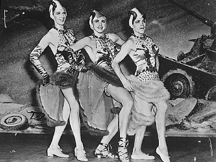 During WWII, to boost the morale of the soldiers, soldier shows were authorized. Thus the beginning of GIs dressing up as drag queens.
