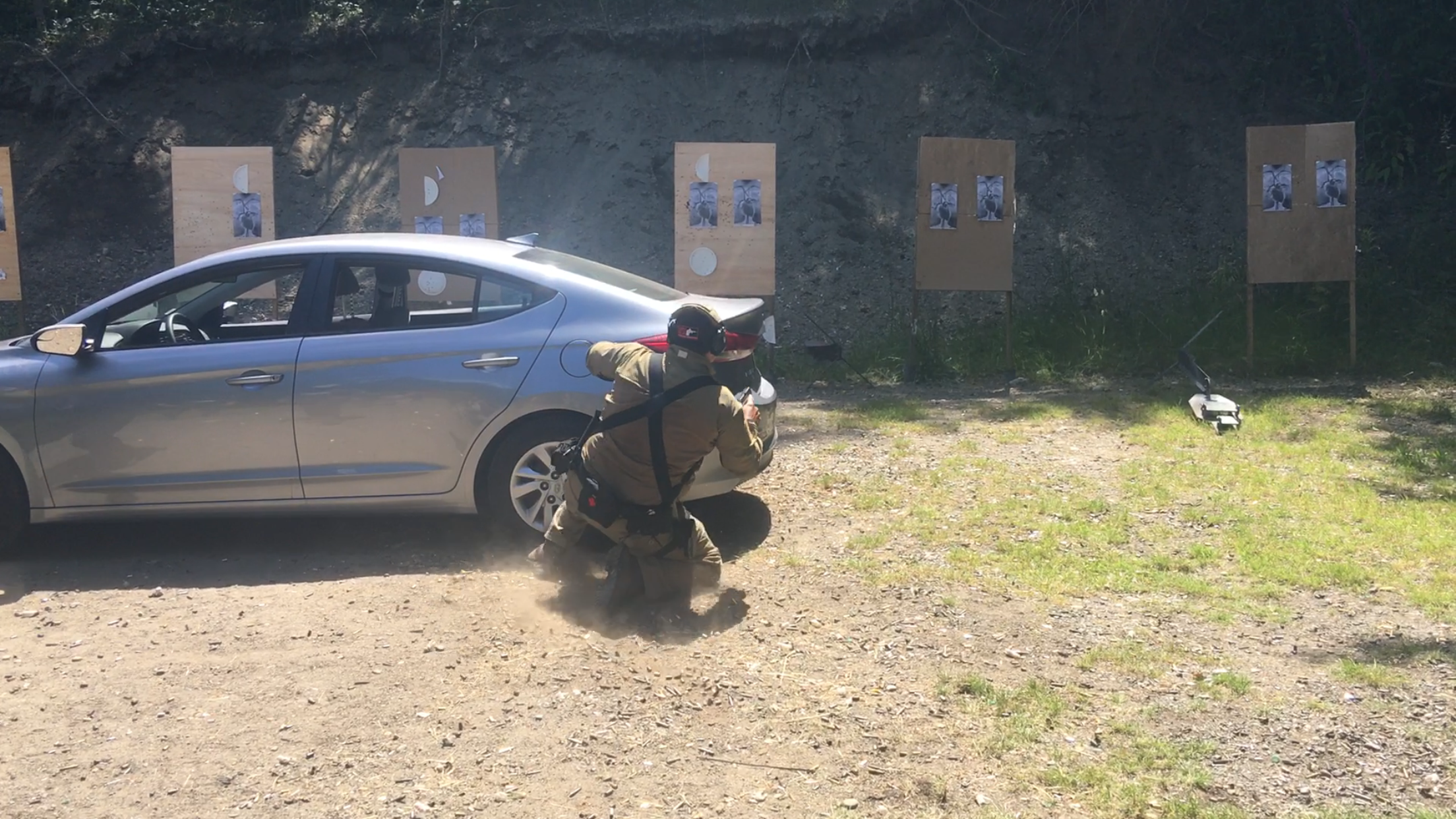 Once the instructors had gauged the ability of individuals to operate their firearms in a safe and efficient manner we moved on to dry fire drills involving shooting in and around vehicles. Shooters were paired up in buddy teams, and each team member worked through each drill. The cadre was there to provide feedback that would help improve efficiency later in the day. Each drill led in a logical manner to the next and built upon the last gaining in complexity. The Cadre were also very open to questions. Unlike a lot of GORUCK events, the Cadre created a constructive learning environment. Instructors had a logical reason for each and every correction made, or movement technique taught.