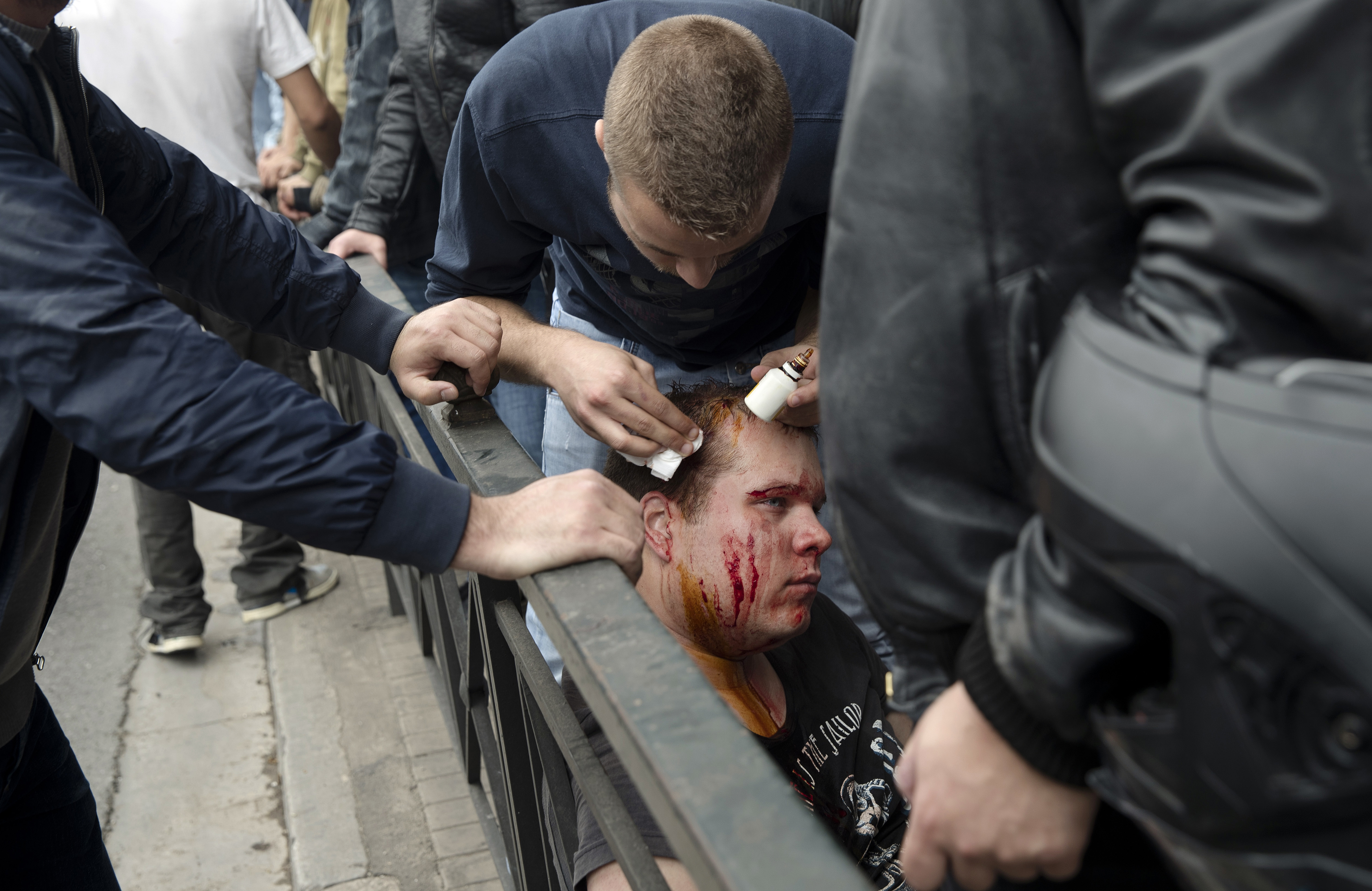 Athens — Several hundred protesters from the Communist party in Greece gathered on Monday, aiming to topple down the statue of U.S. president Harry Truman. They were there to protest the air strikes on Syria that sent scores of missiles down on chemical weapons targets throughout Syria. The protesters tied ropes to the statue in an attempt to tear it down; they also brought a grinder to try and separate the statue from its feet to make it easier to fall. None of these attempts were successful, and before long the riot police arrived — they dispersed the crowd using tear gas, and in the fray three protesters were injured. The statue remained relatively undamaged.