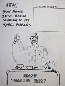 The next morning we, the “Spetsnaz” Harassment and Interdiction (HI) ODA, spooled into action. We split into two-man teams. My bud and I went to the motor pool and begged a heavy set of bolt cutters for “half an hour, to cut a lock on our gate.” With bolt cutters in hand, we left a pre-printed note on the front desk with a statement to the effect of, “This is a MARDEZ exercise. Your bolt cutters will be in use by U.S. Army 1st Special Forces Group (Airborne), and will be returned in approximately one week.”