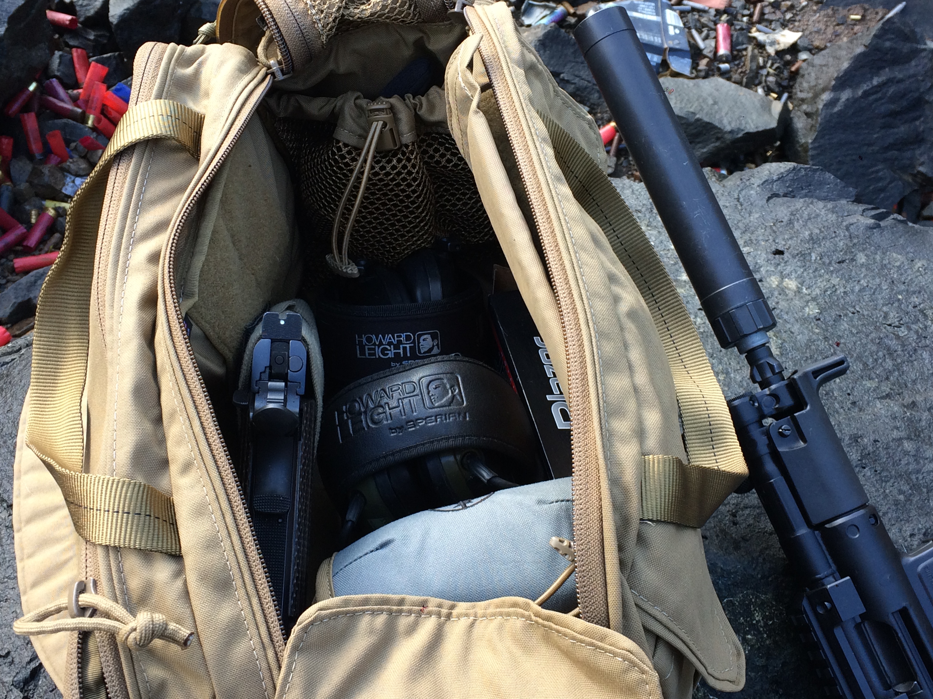 The inside of the bag has a generous amount of “hook and loop” material, known colloquially to most of the developed world as velcro. I used a Vertx Tactigami multi-purpose holster to affix my Remington R1 (1911 pattern) handgun to the inner wall of the range bag. For keeping my handgun from bouncing around, banging into my suppressor and whatever else happens to be coming to the range with me, this is a great solution.