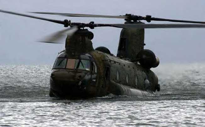 Special Forces soldiers cast themselves from a CH-47 Chinook into a river