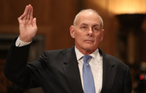 Retired Marine Gen. John Kelly is sworn in before his confirmation hearing in front of the Senate Homeland Security and Governmental Affairs Committee to run the Department of Homeland Security on Tuesday. Courtesy of North Country Public Radio.