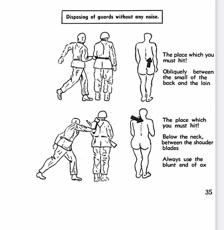 One of the qualities I enjoyed most while reading the book was the use of diagrams. Von Dach uses detailed (and precisely labeled) diagrams throughout his work; these diagrams really bring to life what he is explaining on the page. For example, my favorite diagram shows the best way to kill an enemy soldier using an ax. In addition, the frequency with which he uses the diagrams makes the material easy to understand and interesting to consume.