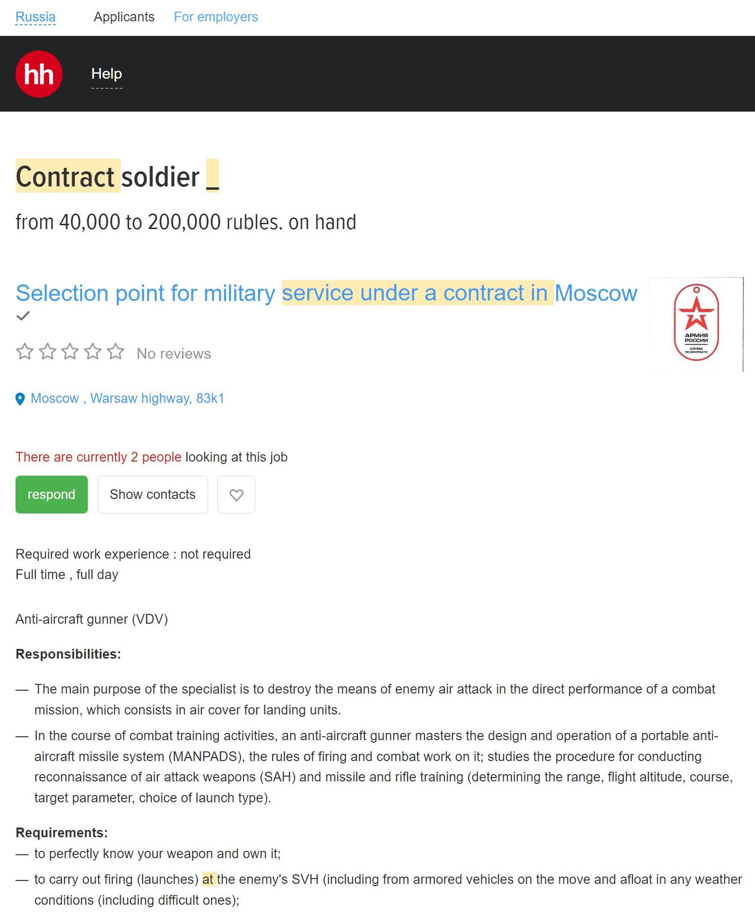 First, only two people are looking at the job (3 if you count me). That’s not a sh*tload of interest, and absolutely nowhere does it mention the war in Ukraine. One might think that’s a fact a potential anti-aircraft gunner might want to be made aware of.