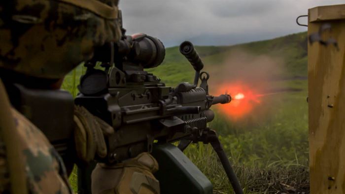 CAMP FUJI, Japan – A U.S. Marine with Marine Wing Support Squadron 171, based out of Marine Corps Air Station Iwakuni, shoots an M240B machine gun during phase two of Eagle Wrath 2017 at Combined Arms Training Center Camp Fuji, Japan, July, 5, 2017. Phase two consisted of conducting live-fire training exercises to give MWSS-171 the knowledge and confidence to utilize weapons systems effectively in a deployed environment.