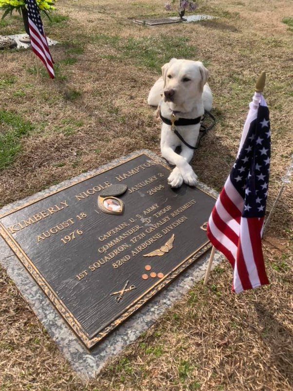 Hampton, a fully-trained service dog, visits his namesake’s final resting place. Image Credit: quora.com