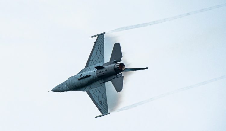 U.S. Air Force Major Garret Schmitz, Air Combat Command’s F-16 Viper Demonstration Team (VDT) pilot and commander, flies an F-16 Viper at Shaw Air Force Base, South Carolina, June 18, 2020. (Photo by Airman 1st Class Jacob Gutierrez/USAF)