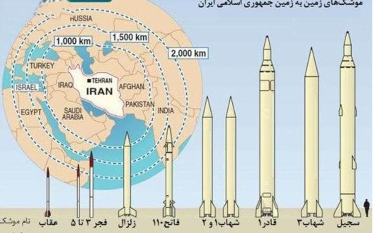 Iranian missiles and their ranges. Image courtesy of The Tehran Times