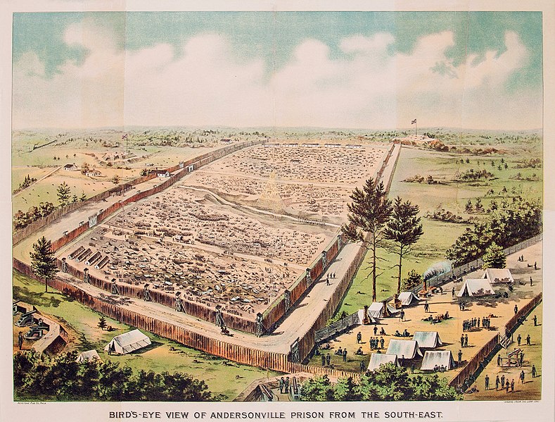 Bird’s Eye View of Andersonville Prison From the South-East. (Keystone Publishing, Public domain, via Wikimedia Commons)