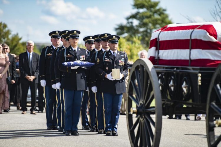 Soldiers from the 3d US Infantry Regiment escort the remains of the highly decorated Lt. Col. James Magellas at Arlington National Cemetery on September 2nd, 2022. US Army photo by Elizabeth Fraser / Arlington National Cemetery