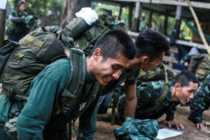Eight hours into the exercise, they’ve completed a rope-bridge crossing, rappelled down a cliff, taken written tests, and trekked around in search of navigation points. Eleven stations are complete.