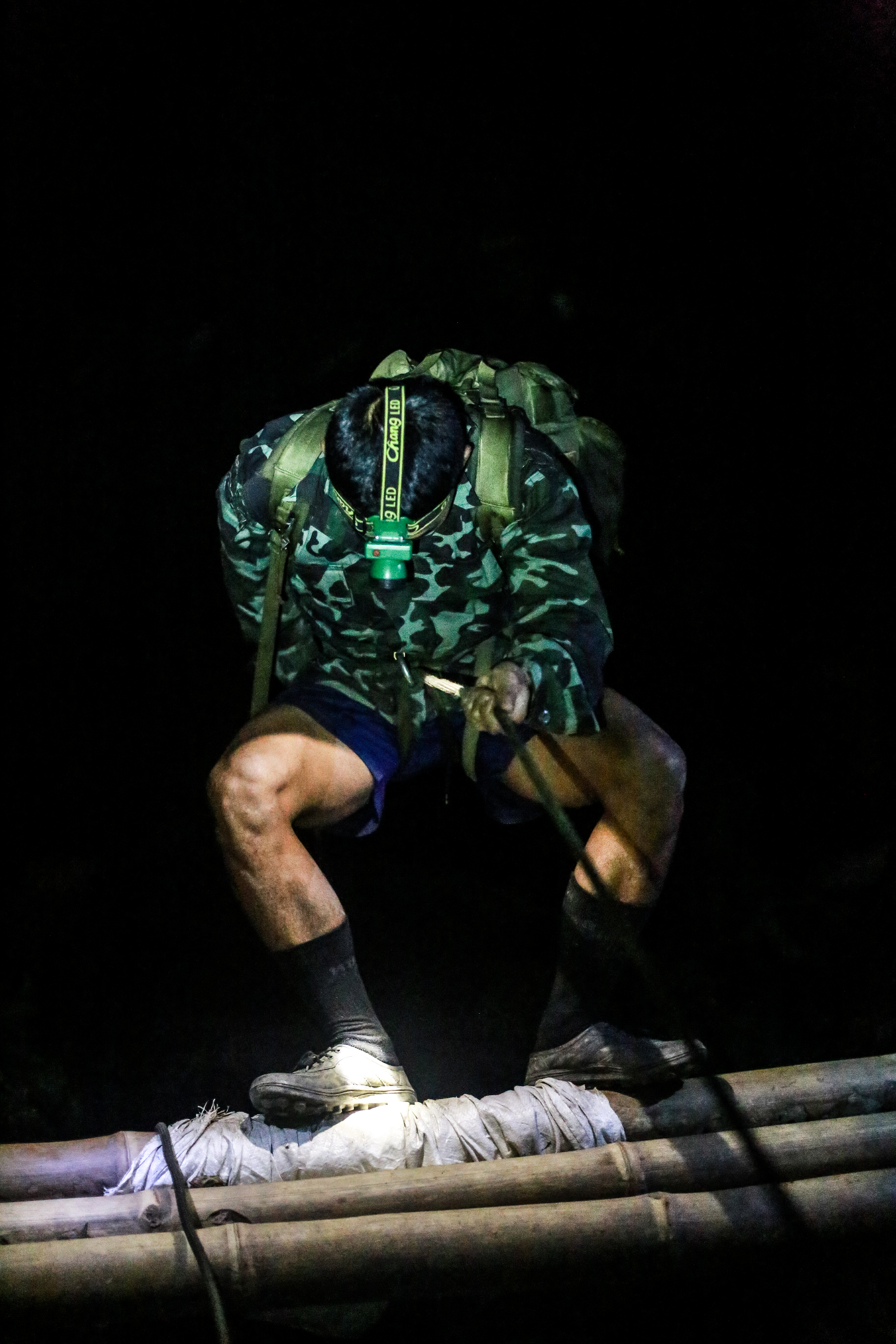 They easily finish the written test. It’s 9:00 p.m. and they begin a night of running around the jungle.