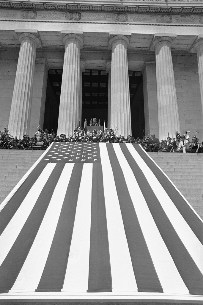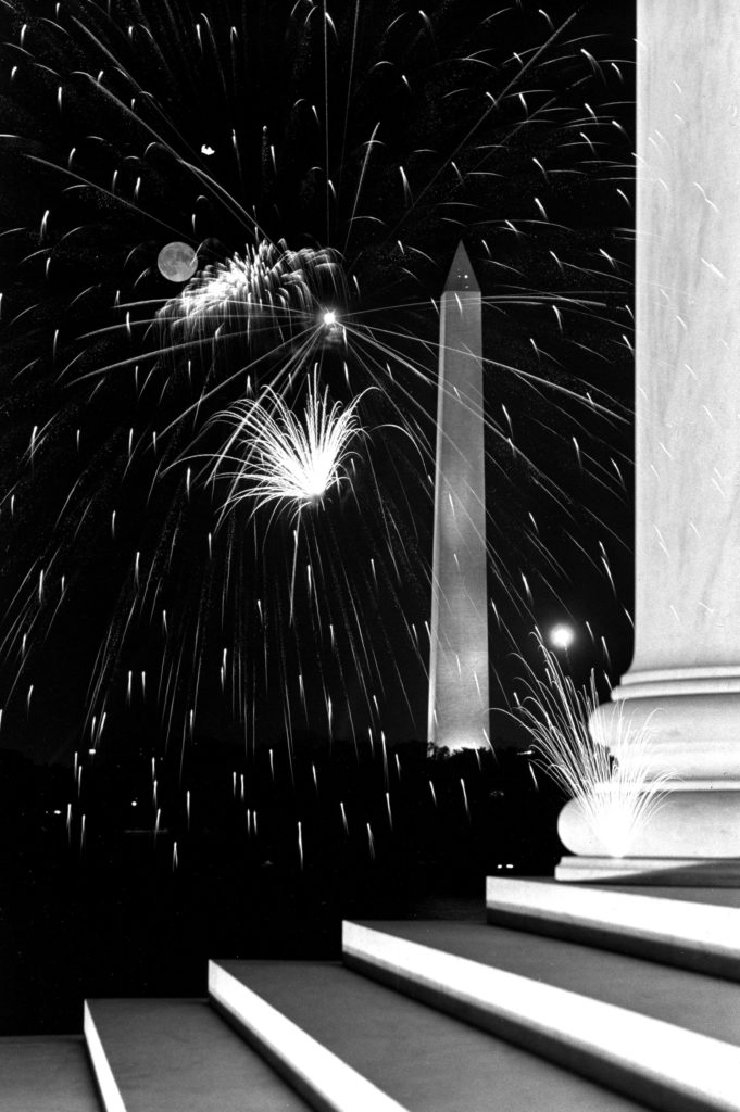 Featured image: This view, from the Virginia side of the Potomac River, shows the moon above the Iwo Jima Statue as fireworks burst over Washington, D.C., on July 4, 1966. The Washington Monument, obelisk, and the Lincoln Memorial can be seen in the background. | AP Photo/Charles Tasnadi