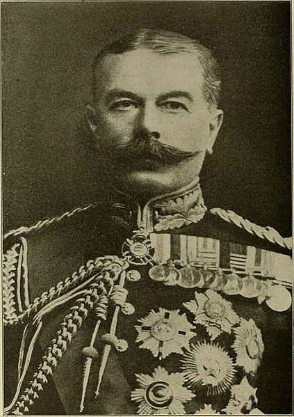 Field Marshal Herbert Kitchener, Earl Kitchener of Khartoum, British Secretary of State for War. (Internet Archive Book Images, No restrictions, via Wikimedia Commons)