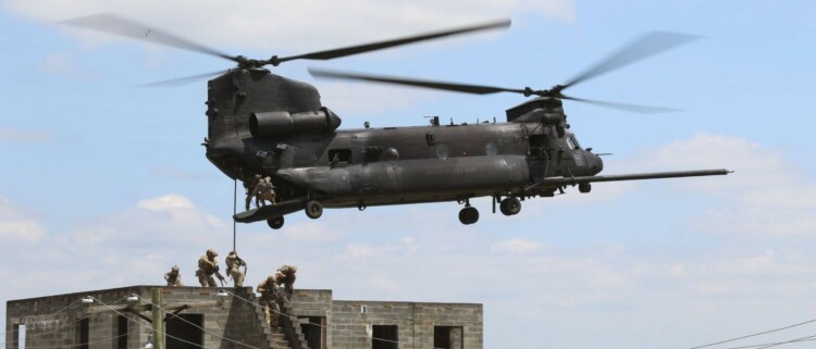 75th Regiment Rangers during a fast roping exercise.