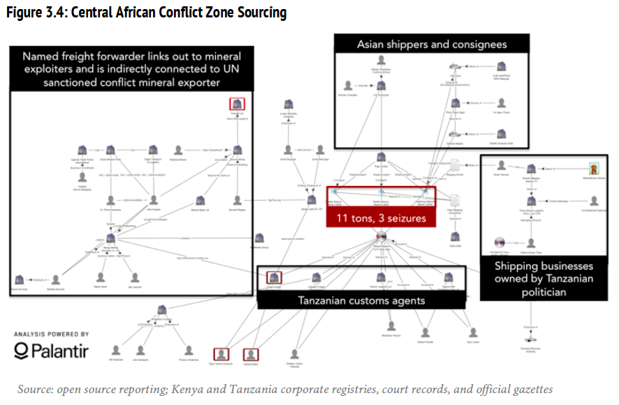 Smugglers rely predominantly on shipping to move bulk ivory from East Africa to East Asia (mainly China). C4ADS, using open sources (publicly available information) combined with anonymous interviews, was able to generate high-fidelity intelligence on this smuggling network. They highlight the issue of information existing in silos and advocate the need for an intelligence-fusion center to generate actionable intelligence. Their report leads me to believe that they have generated a great deal of intelligence, fusing data ranging from financial information, money laundering, geospatial data, and law-enforcement reports, with investigative journalism and basic link analysis. One of their most significant suggestions was that, in the absence of government bodies doing this analysis, a NGO like C4ADS could potentially do it on a contracted basis.