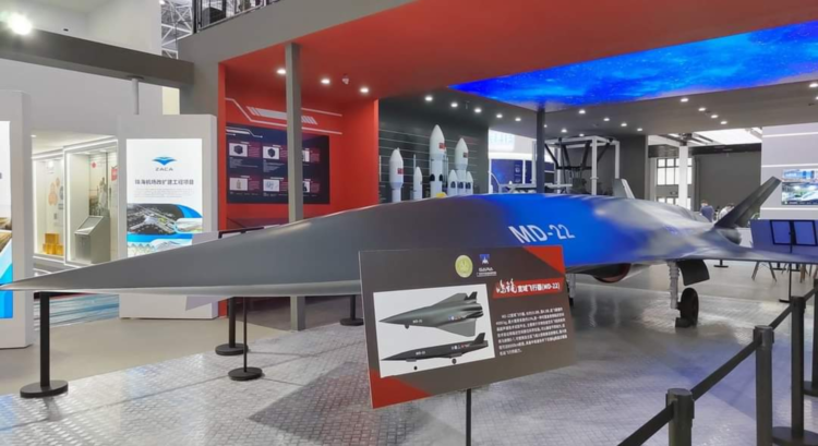 China showcases MD-22, a reusable near-space hypersonic aircraft, at the Zhuhai Air Show. It claims to fly at Mach 7 speed and has a range of up to 8000 km. (Image source: Twitter)