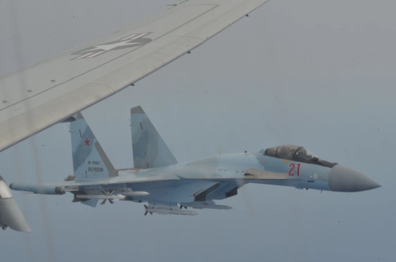 This fascinating photograph of a Flanker-E was taken from a US P-8A Poseidon patrol aircraft over the Mediterranean Sea. There was one on each side of the Poseidon so close that the American aircraft could not safely maneuver. Image Credit: Petty Officer 1st Class Jonathan Nelson