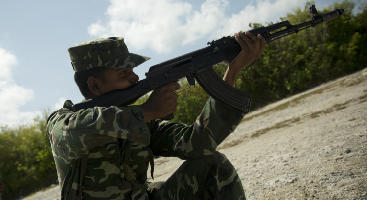 A Maldives National Defense Force soldier fires a rifle during an annual rifle qualification on January 15, 2014. (Image source: Wikimedia Commons)