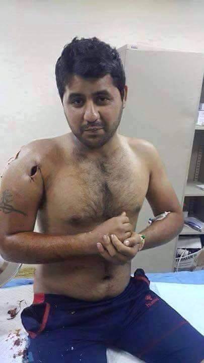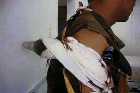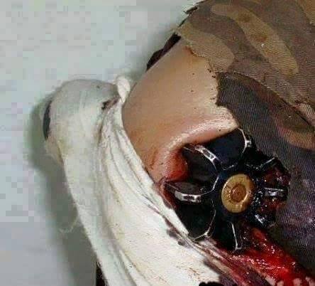 There has been a series of graphic photos circulating lately (below), started by Iraqi social media, showing a man who has caught a 60mm mortar round through his shoulder. It is being hailed as an example of the bravery and hardness of the Shi’a militias and Iraqi Security Forces as they battle against ISIS.