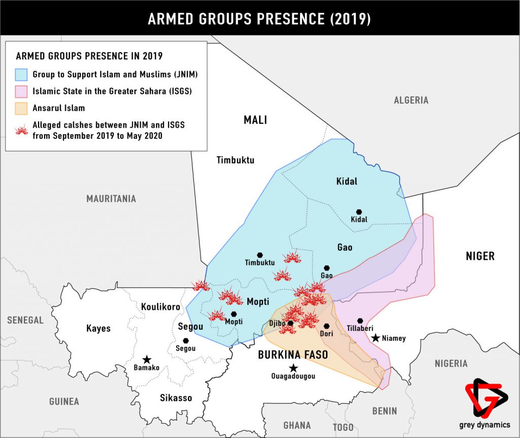 Sporadic confrontations between JNIM and ISGS have been reported by the local press in the second half of 2019. These escalated into major battles in central Mali and Burkina Faso at the beginning of 2020. Clashes between the two jihadist groups started after ISGS fighters crossed into a region in central Mali from Burkina Faso at the beginning of the year. The groups have fought in two different areas.