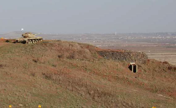 An Israeli tank on the strategic Golan Heights overlooks the valley below. The area was seized by Israel during the 1967 war.