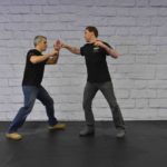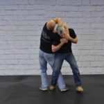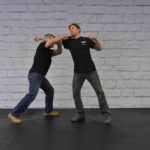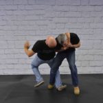 If your attacker successfully breaks your posture and clinches your head, use thumb gouges to the eyes to disengage followed by retzev. As the attacker breaks your posture and pulls you in, use your rule of thumbs defense to attack the attacker’s eyes. Although you cannot see, simply find the attacker’s cheekbones with your palms and immediately jam your thumbs into the attacker’s eye sockets.