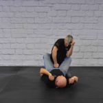 Before the attacker can get ahold of any part of you, straighten your back or “posture up” and rudely jam your knee into your attacker’s tailbone. This can be a debilitating strike in itself and a counter against your attacker’s attempt to control you with his legs. Strike your attacker’s groin using straight punches, hammerfists, and vertical elbows along with grabs and twists. You may also trap one or both of the attacker’s arms while delivering simultaneous combatives. The high-closed guard can allow your attacker strong body control over placing you in a highly vulnerable position.