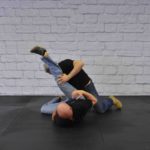 When two opponents are fighting, they may clinch up or grab one another. The physical confrontation becomes a grappling struggle. One opponent may fall backward to the ground to immediately wrap his legs around the second opponent, placing the second opponent in the guard position. The guard can be “open” or “closed.” An open guard is when one’s legs are wrapped around an opponent’s torso, but not crossed behind the opponent. A closed guard is when one’s legs are wrapped around an opponent’s torso with one ankle overlapping the other to lock one’s legs around the opponent. For this tactic, you are the person with the attacker’s legs wrapped around you. Note: Krav maga does not emphasize using the guard because of its inherent anatomical vulnerabilities (except for specific military applications).