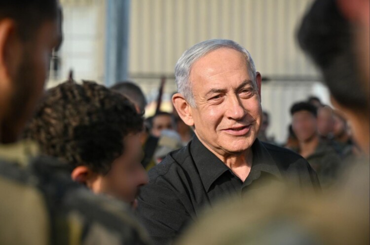 Prime Minister Netanyahu visiting troops on October 24th. Image by Kobi Gidon/GPO