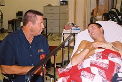 His wife accompanies him on trips to Walter Reed and other hospitals, speaking with the wives, mothers and girlfriends of the injured veterans, giving the message that while life will change, it is going to be ok.