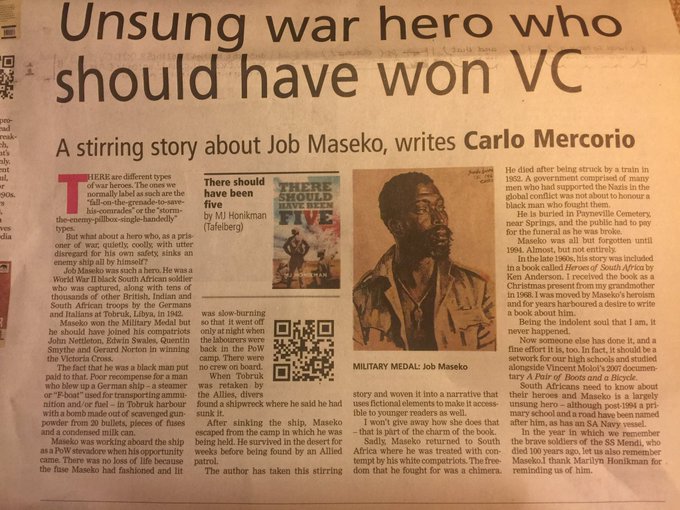 And Gillespie could be right if we’re going to base on what war artist Neville Lewis claimed, that Maseko was supposedly nominated for the VC, but an officer downgraded him to the Military Medal because he was black.